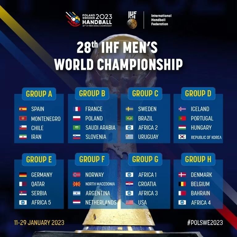 El XXVIII Campeonato Mundial de Balonmano masculino en Polonia y Suecia se lleva a cabo desde este miércoles 11 al 29 de enero