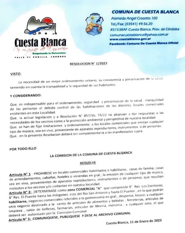 La jefa comunal Ana Gaitán señaló al diario La Voz que "hubo una buena repercusión y los vecinos están de acuerdo. Esto es por el bien de la gente que viene a Cuesta Blanca a descansar, a escuchar el sonido del agua y el canto de los pájaros".