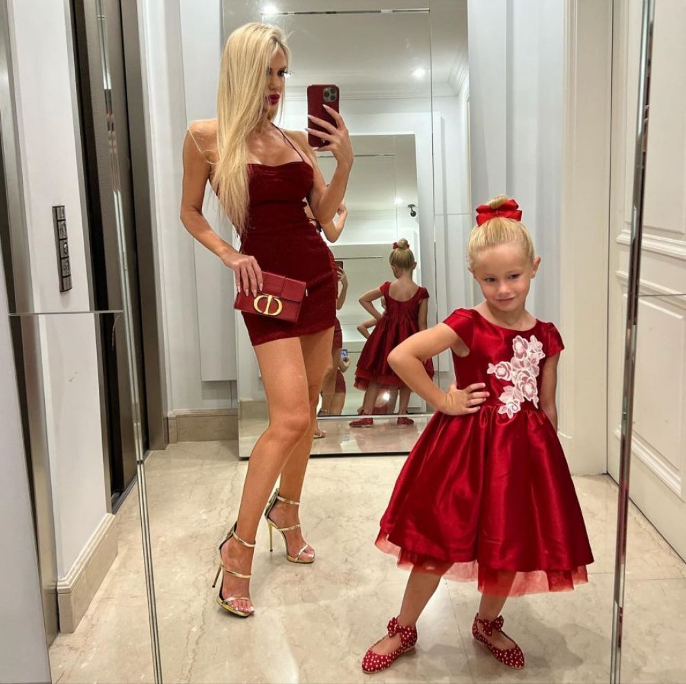 Ahora, ser madre no la exime de cambiar sus hábitos en lo que respecta a su imagen y por supuesto que el glamour tiene que estar siempre y al parecer no solo para ella, sino también para la pequeña quien juega con su mamá mucho en lo que se refiere a vestuario.
