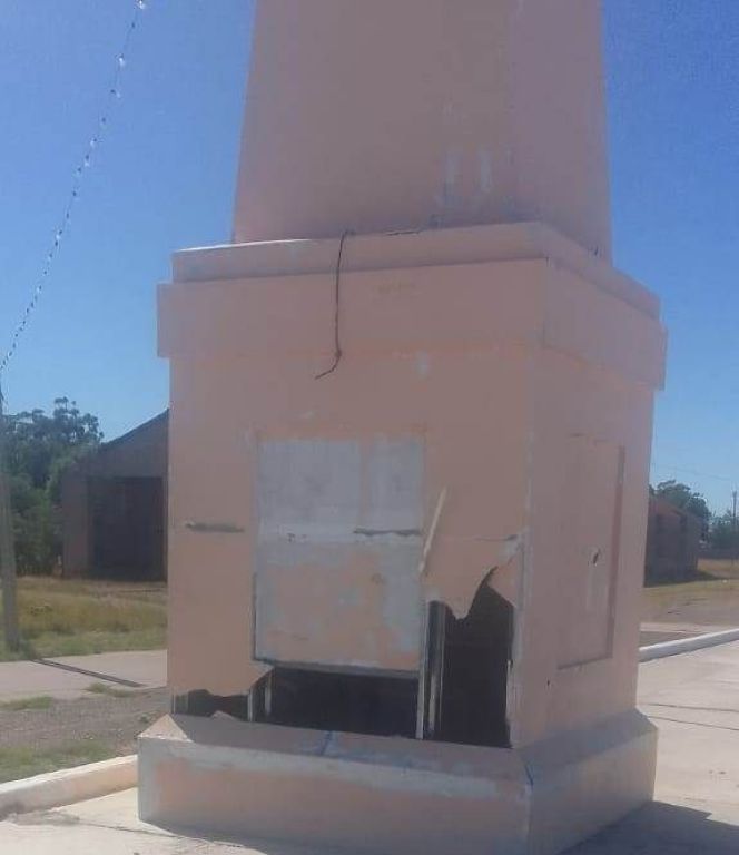 A pesar de los pedidos realizados públicamente, desconocidos siguen vandalizando la réplica del monolito ubicado en la Plaza Central de Carmen de Patagones, lugar donde se desarrolla la tradicional Fiesta de la Soberanía Patagónica.