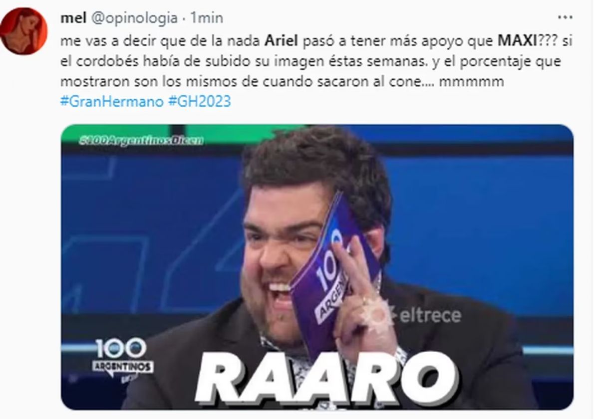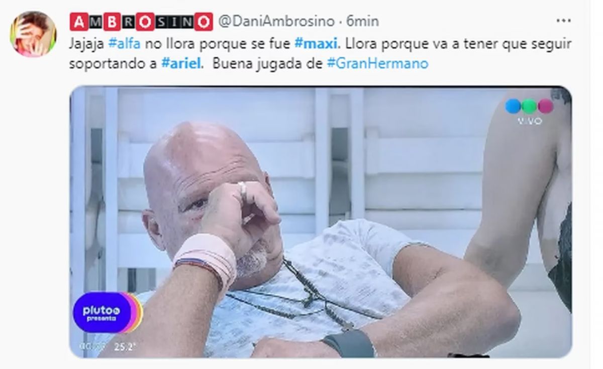 La continuidad de Ariel también tiene mucho que ver con su conflicto con Alfa, teniendo en cuenta que el participante más veterano de la casa comenzó a perder mucho apoyo en el show. La pelea entre ambos también genera mucho impacto desde el contenido, algo que dio lugar a este resultado en redes.