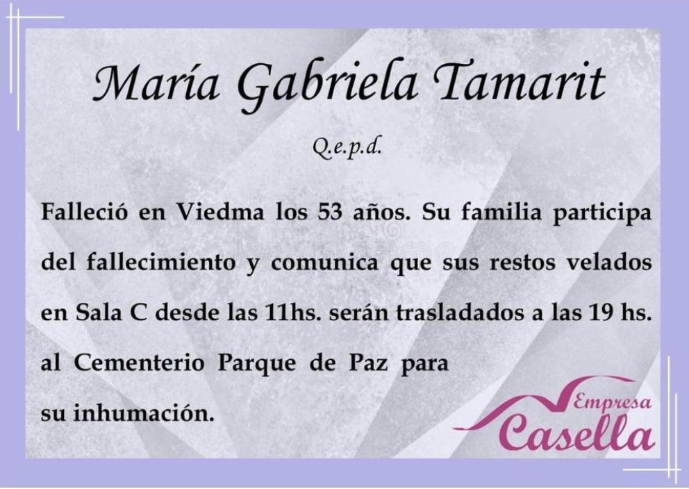 En las últimas, el fallecimiento de quien fuera jueza, la doctora María Gabriela Tamarit, generó dolor y consternación entre sus familiares, amigos, y colegas. En el transcurso de esta mañana se conoció la noticia sobre su deceso. Tenía 53 años y desde hace muchos años luchaba contra una enfermedad.