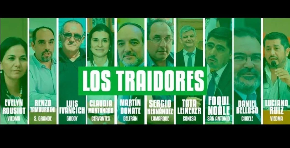 El senador Doñate aparecía como “el máximo responsable de la venta y la desaparición electoral del Partido Justicialista de Río Negro”. Asimismo, se les asignó un rol secundario a los intendentes Sergio Hernández (Lamarque), Héctor Leineker (General Conesa), Renzo Tamburrini (Sierra Grande), Claudia Montanaro (Cervantes) y Luis Ivancich (General Godoy); a los legisladores Daniel Belloso (Choele Choel) y Luis Noale (zona atlántica), al concejal Luciano Ruiz (Viedma) y a la exconcejala y delegada de Anses en Viedma, Evelyn Rousiot.