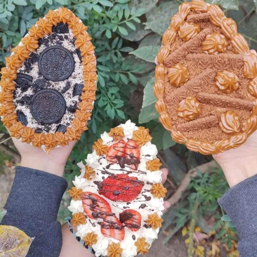 Andrea, una de las emprendedoras que se dedica a hacer estas delicias de chocolate, realiza huevos con chocolate blanco, con leche y tipo Kinder, con un peso de entre 250 y 300 gramos a $1500.