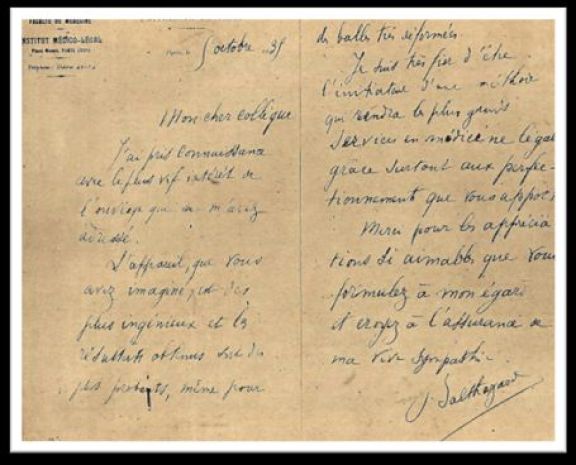 Los resultados de este invento Argentino fueron comunicados al Dr. Balthazard y éste lo elogió mediante una carta dirigida al Subcomisario Belaunde, y además solicitó que se le tuviera al tanto de las experiencias en este sentido.