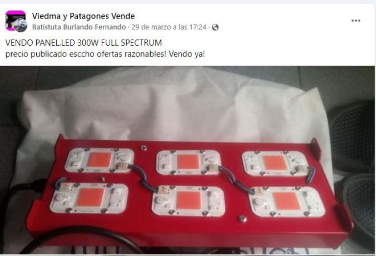Pero no es el primer objeto sustraído que comercializa por este canal, ya que anteriormente vendió un panel Led de 300 watts full Spectrum, con el mensaje "escucho ofertas razonables, vendo ya".