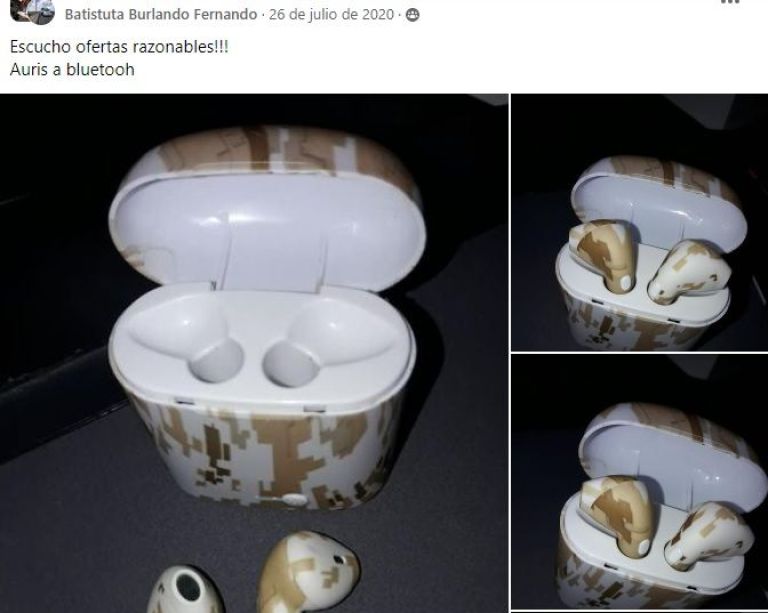 Asimismo, comercializó auriculares con Bluetooth, "como nuevos" y con color camuflado.