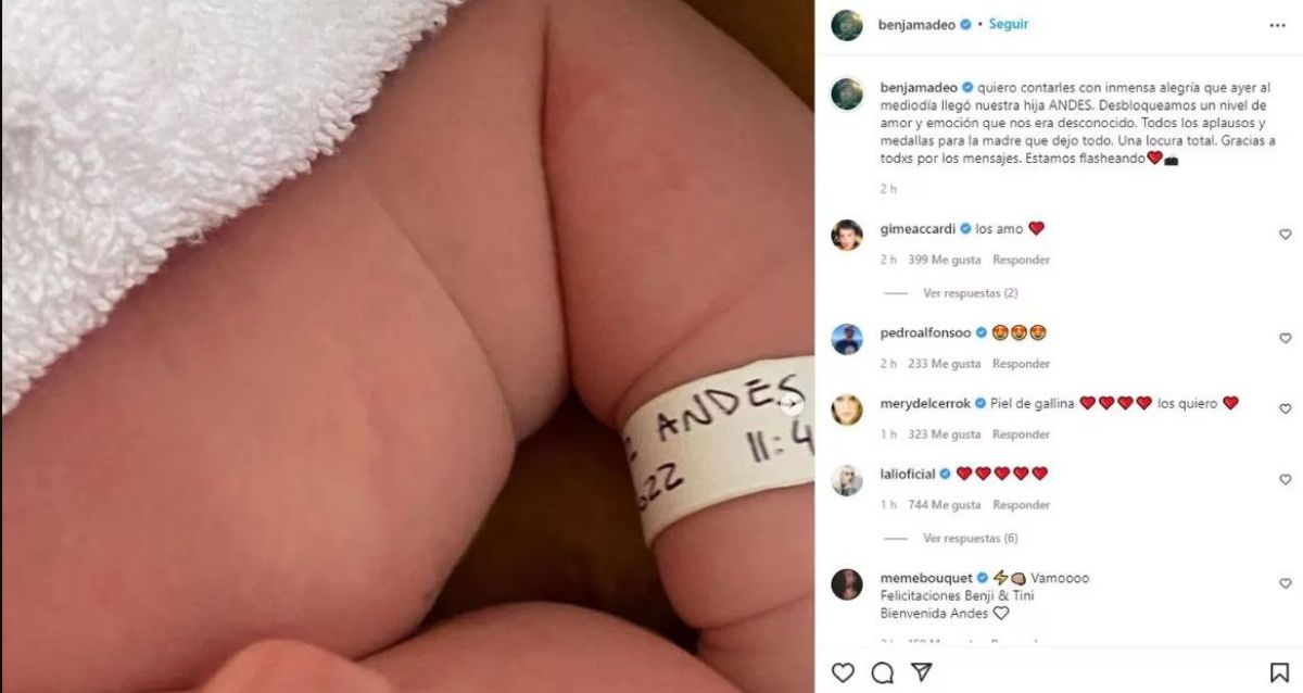 En varias oportunidades, el propio Benjamín Amadeo la halagó mencionando que ella es sin dudas la mujer de su vida. Tan es así, que hace poco decidieron sellar su amor con la llegada de un hijo. Así fue como el 8 de enero del año pasado recibieron en sus vidas a Andes.