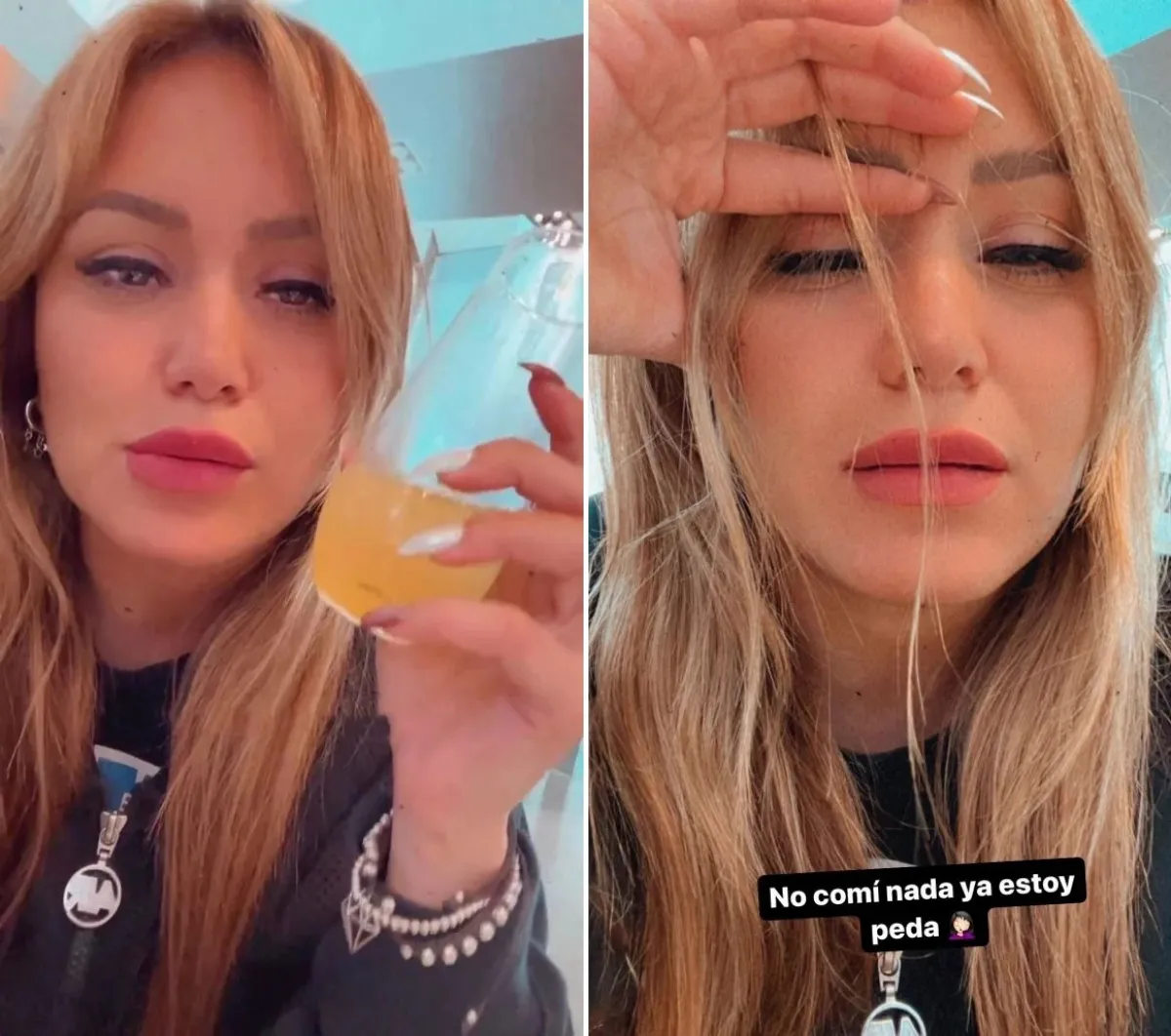 En su Instagram también reaccionó, ya que subió una historia en la que se filmó en modo selfie y aclaró: "No comí nada. Ya estoy peda". Luego publicó el trago que estaba tomando y habló del cantinero que estaba atendiéndola. "El cantinero tiene mi mismo apellido. Tiene madre mexicana y padre español. ¿Seremos primos? No sé. Hay que averiguar", dijo.