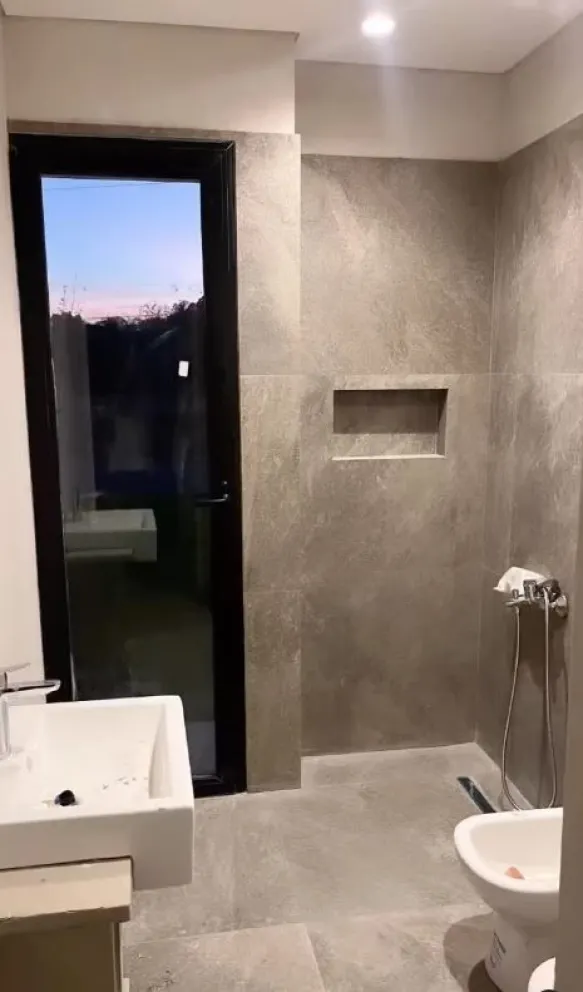 Uno de los baños tiene revestimiento en gris oscuro de sueño a techo, mientras que la casa también tiene pileta de natación, que aún se encuentra en proceso de construcción. Recientemente, la panelista mostró en su cuenta de Instagram cómo quedaron. Se trata de cortinados rústicos en color natural que le dan calidez al ambiente.
