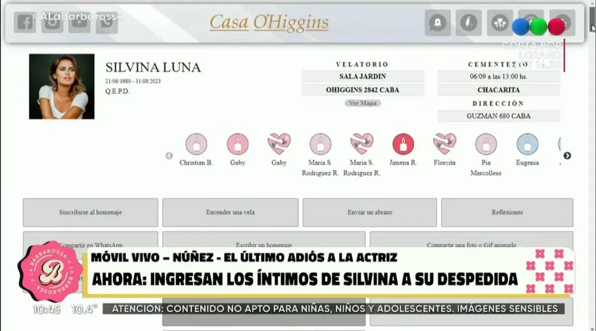 “Hay un monitor. Es la parte que más nos shockea a todos. Está el nombre de Silvina Luna y su foto. Se acaba de encender”, reveló la periodista respecto a la tristeza que generaba ver la imagen de Silvina Luna junto a las siglas “Q.E.P.D.”