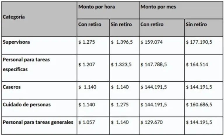 Según lo establecido en la Resolución 3/2023, a partir de septiembre, el sueldo básico para una empleada doméstica en la categoría de "personal para tareas generales" será de $129.670 y la hora de trabajo se pagará a $1.057. Esto muestra un aumento significativo en comparación con los salarios anteriores.