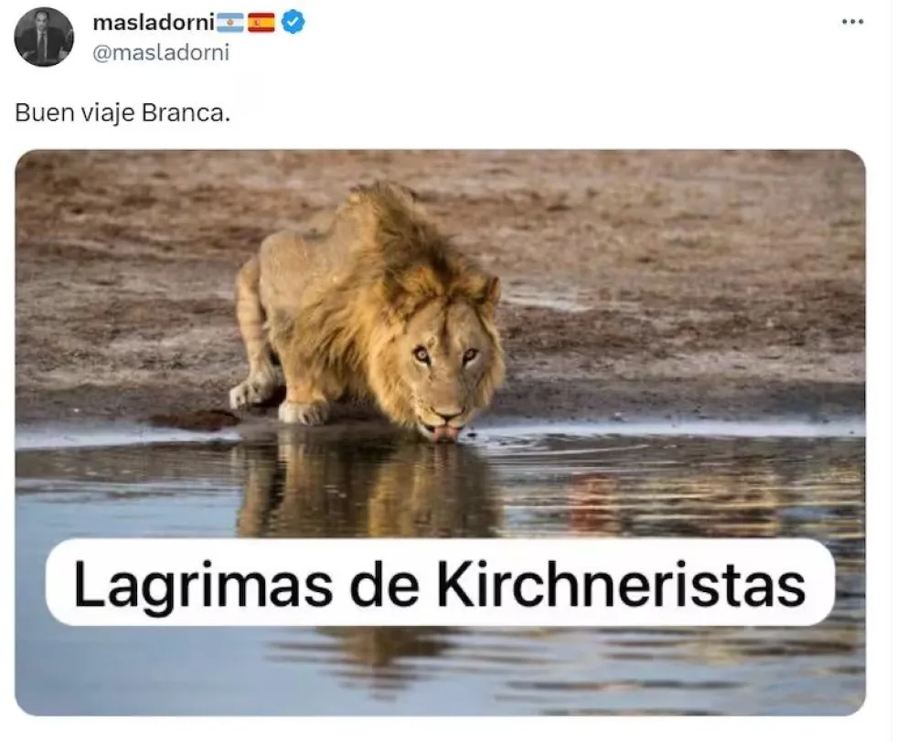 Fue entonces cuando Brancatelli irrumpió en las redes sociales y cruzó a la banda de cumbia. “Chau, Los Palmeras. Nunca más”, escribió a través de su cuenta de X. Los usuarios no tardaron en desatar una ola de memes ante la situación y destacaron que el líder libertario parecía no saberse la letra del popular tema.