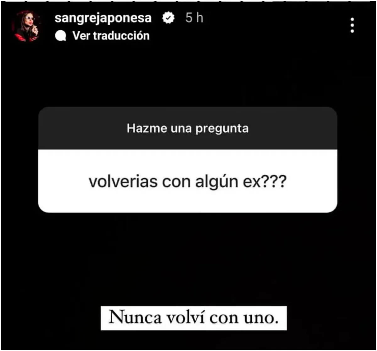 Otra pregunta que recibió fue sobre la posibilidad de volver con una ex pareja. La China respondió con firmeza: "Nunca volví con uno". Esto coincide con sus acciones, ya que nunca ha retomado relaciones con Nicolás Cabré ni con Benjamín Vicuña, los padres de sus hijos.