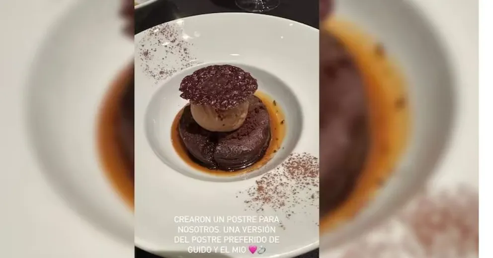 Pero el detalle a destacar es el postre que degustarán luego de la cena. "Crearon un postre para nosotros. Una versión del postre preferido de Guido y el mío" contó Sol. En una foto se podía ver una especie de flan de chocolate con caramelo alrededor una bocha de helado y una galletita arriba. Hasta ahora no mostraron más detalles del menú.