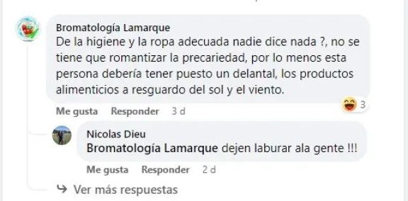 Y fueron más allá: "No se tiene que romantizar la precariedad, por lo menos esta persona debería tener puesto un delantal, los productos alimenticios a resguardo del sol y el viento".