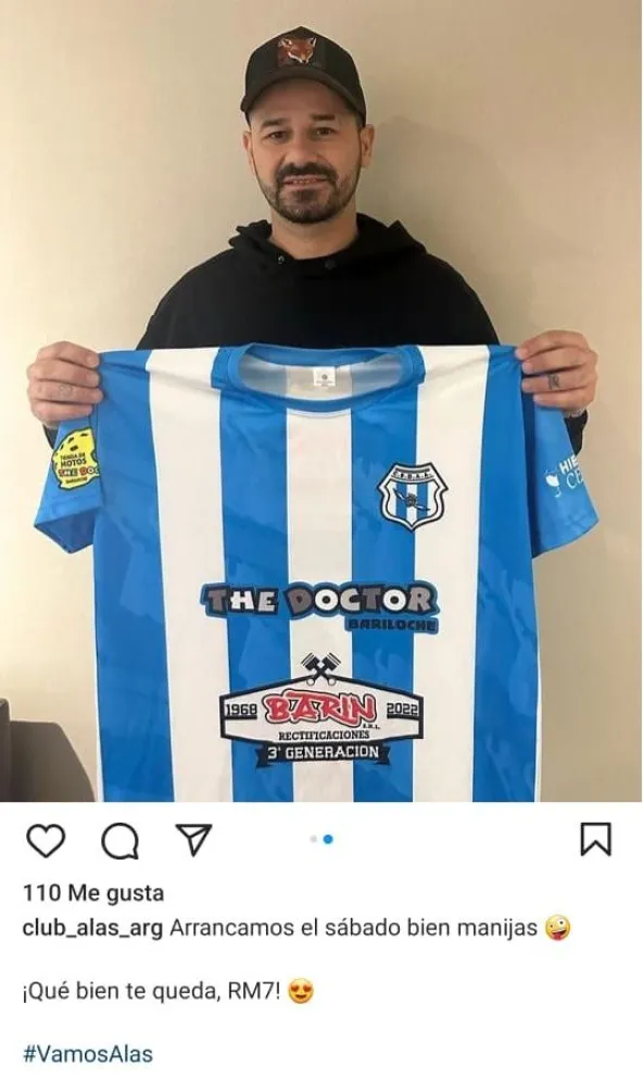 Rodrigo Mora compartió en sus redes sociales su nueva camiseta de Alas Argentinas de Bariloche