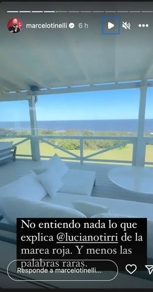 Las redes sociales tampoco escaparon de la atención de los seguidores del conductor, quienes notaron que Tinelli ha compartido varias historias en las que se le ve disfrutando de la mansión en compañía de su primo, El Tirri.