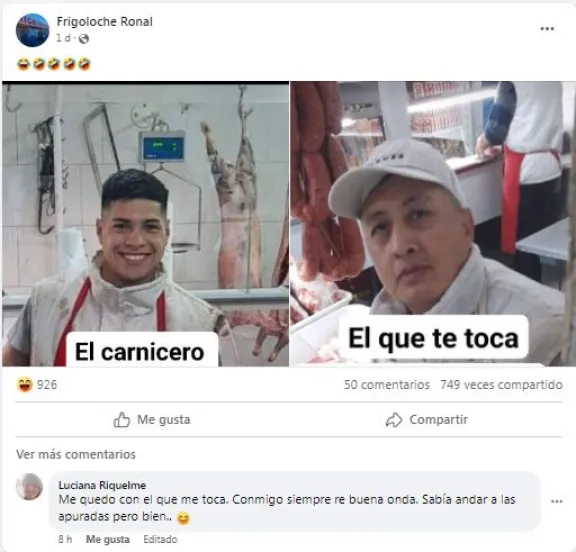 Tal fue el impacto en las redes sociales que hubo quien hizo memes con “el carnicero de El Vasquito”. Uno de ellos proviene de otra carnicería local que utilizó a sus trabajadores en una comparación divertida que también fue bien recibida por el público y cosechó cerca de mil me divierte.