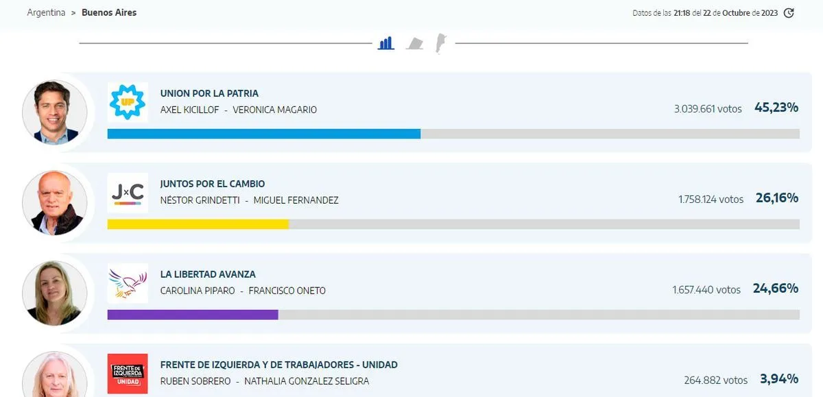 Axel Kicillof fue reelecto este domingo como gobernador de la Provincia de Buenos Aires y comandará los destinos del principal distrito del país durante cuatro años más tras obtener un contundente triunfo en las urnas.