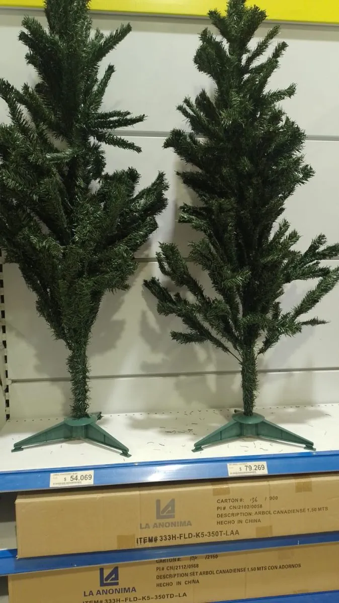 Los clásicos pinos de Navidad de un metro cuestan 54 mil pesos, mientras que los de un metro y medio $79200, casi 80 mil pesos. Pero no es lo único que se fue por las nubes: las luces que iluminan este símbolo arrancan desde 9 mil pesos y hasta 13 mil pesos.