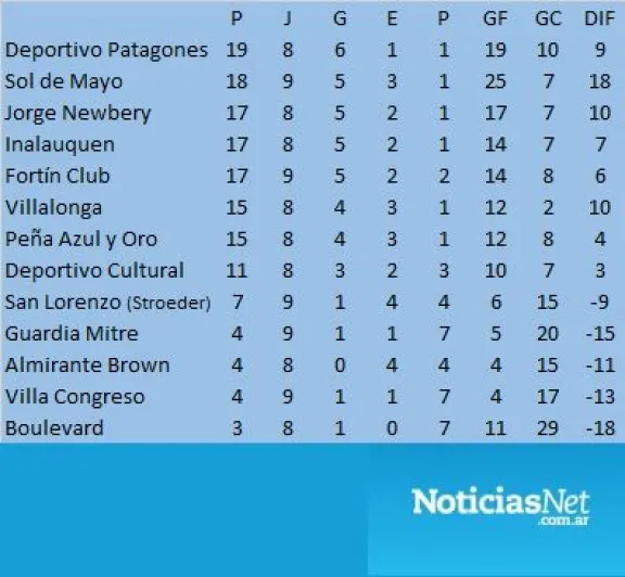Con estos tres puntos, Sol de Mayo alcanzó los 18 puntos, quedando solo a una unidad del actual líder, Deportivo Patagones, en una fecha, donde los equipos de la parte alta de la zona se enfrentarán entre sí.