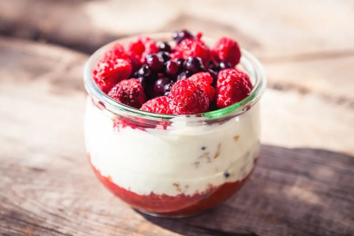 1/3 de taza de yogur natural o yogur griego (bajo en grasa)