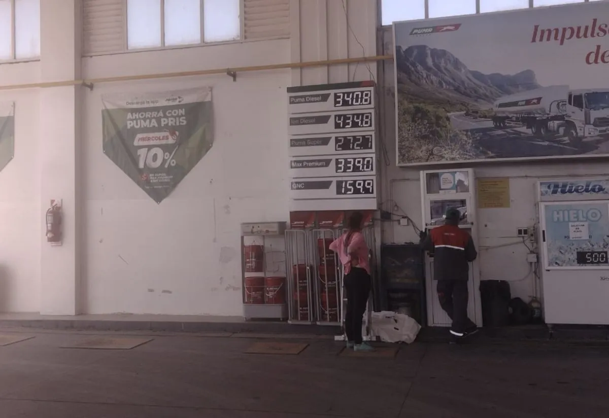 Para los que están acostumbrados a cargar en Puma, el cartel que indica los valores fue retocado hace minutos, y dice lo siguiente: súper 272.7; premium 339 pesos; Puma diesel 340.8 y ion diesel 434.8 pesos.