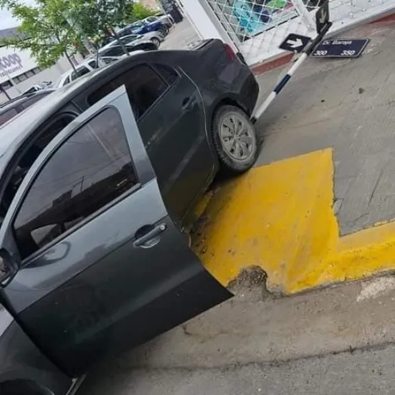 No hubo que lamentar heridos, pero el Polo terminó sobre una rampa, rompió un cartel nomenclador y terminó apenas a centímetros de la vidriera de la pañalera.