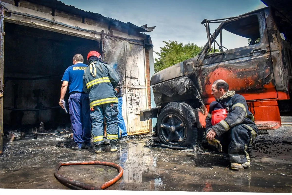 Hubo daños en la totalidad del galpón, en un camión arenero, en neumáticos y en tubos de oxígeno, pero se evitó que se extendiera a mayores, con garrafas y tubos de gas apenas a metros del foco ígneo.