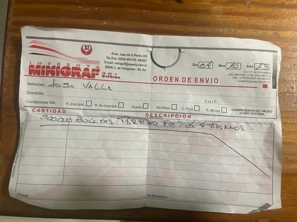 Se conoció una imagen donde el mismísimo Valla pagó 300 mil pesos en la impresión de esos papeles, que después los cortaron.