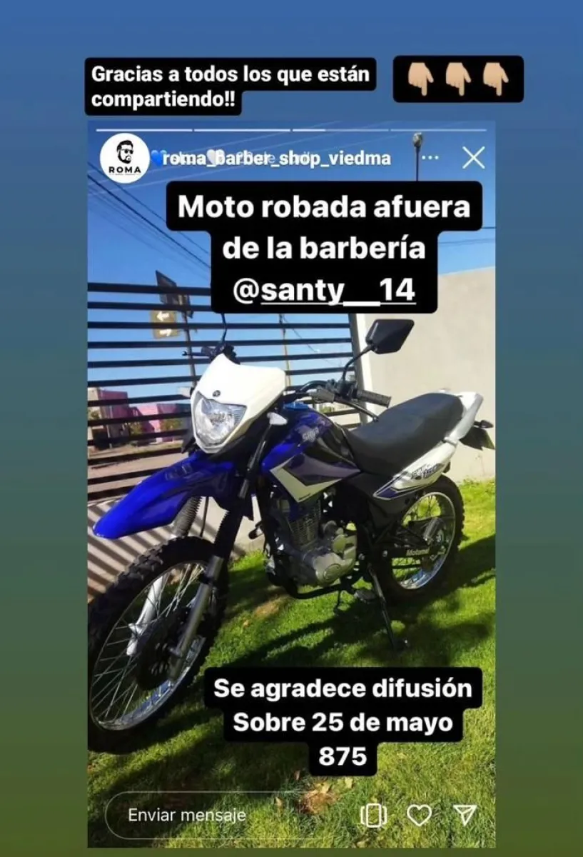 Si bien no es grato que le roben a nadie, en este caso, Santy -el joven a la que se la robaron-, la usa para ir a trabajar. Además, se la compró con mucho esfuerzo, fue una compensación a su voluntad y ganas de progresar. Ocurrió en la calle 25 de Mayo al 825, donde funciona la barbería en la que trabaja.