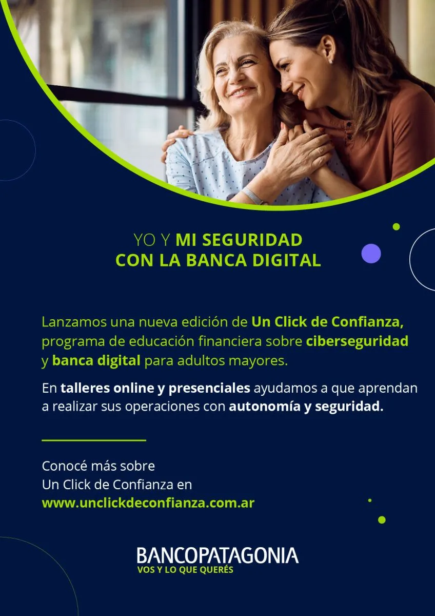 Con el objetivo de facilitar el uso de la banca electrónica en personas mayores de 60 años, Banco Patagonia impulsa por octavo año consecutivo el Programa “Un click de Confianza”. La inscripción y participación es libre y gratuita hasta el 19 de diciembre en www.unclickdeconfianza.com.ar
