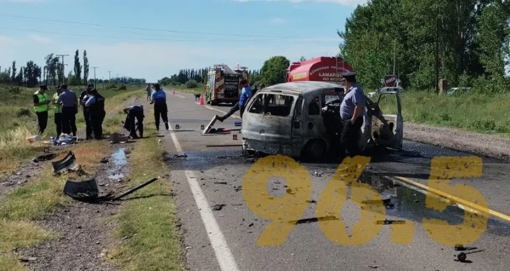 En la mañana del martes se produjo un fatal accidente en la Ruta 250 entre Lamarque y Pomona, cuando colisionaron un Peugeot 408 y una camioneta Chevrolet Meriva y ambos rodados se incendiaron.
