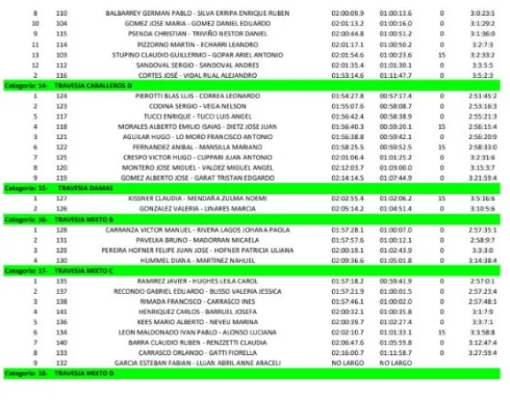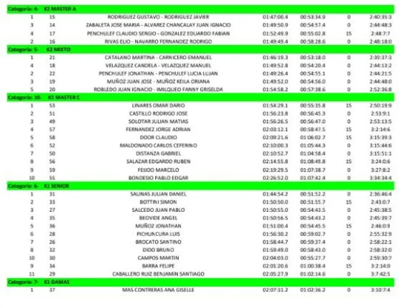 En la categoría travesía, tuvieron como los que se impusieron en la etapa dos a Fabián Aravena y Damián Aravena en Caballeros “A”, mientras que en “B”, lo hicieron Nicolás Jara y Nicolás Cifuentes, en “C”, Julio César Mañone y Hernán Taborda Marcaron el camino, y en “D” Blas Perotti y Leonardo Correa fueron los más veloces.