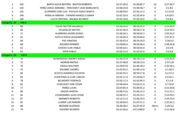 Claudia Kissner y Zulma Mendaña lo hicieron en damas, mientras que en Mixto “B” Victor Carranza y Johana Rivera fueron los primeros que superar la bolla. En Mixto “C”, Javier Ramírez y Leila Hughes fueron quienes obtuvieron mejor tiempo, y Alicia Barth y Roberto Bustos en Mixto “D”.