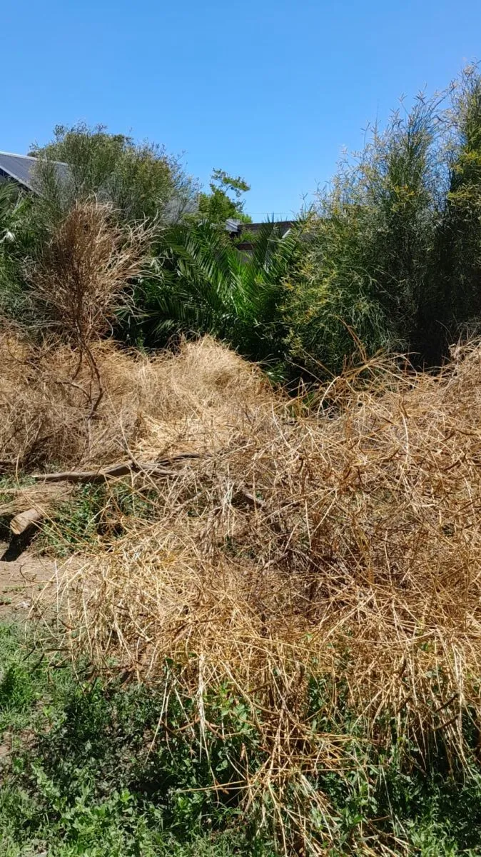 Remarcó que la escena se repite a diario, justamente, por ese terreno que está en abandono total, y que, debido a la maleza, quienes salen a robar lo usan para esconderse y hasta como lugar estratégico para hacer de las suyas. Además, porque en esa calle –la Santa fe- no tiene iluminación. “Ese baldío es un peligro. Hay palmeras inmensas apoyadas contra mi paredón, reclamé por eso también, porque me lo van a tirar, a la vecina también le pasa lo mismo, pero no tengo respuestas”, remarcó.