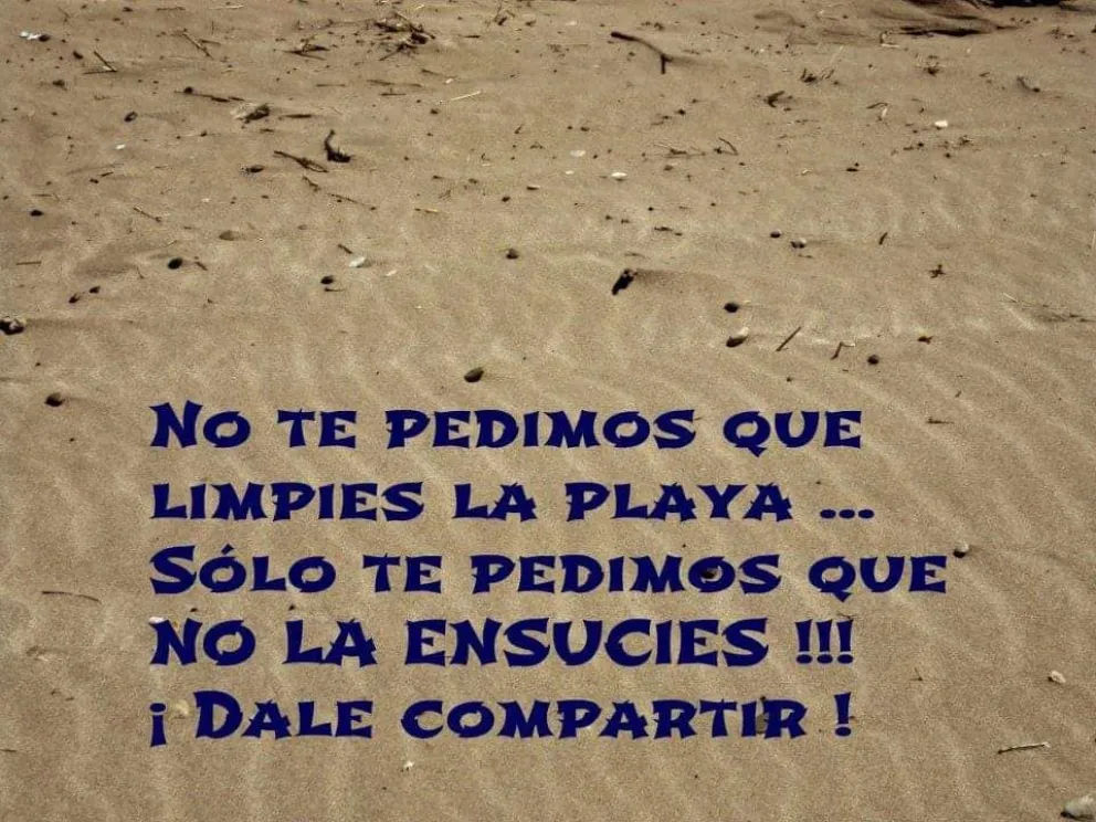 El eslogan es: “No te pedimos que limpies la playa, sólo que no la ensucies”. La idea es que cada uno se lleve a su casa lo suyo y lo tire donde no corresponde. Llevarse una bolsa par air tirando ahí es la cuestión.