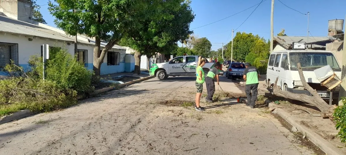 En coordinación con Defensa Civil, la Municipalidad de Patagones centró sus esfuerzos en despejar árboles caídos y supervisar grandes ramas con riesgo inminente.