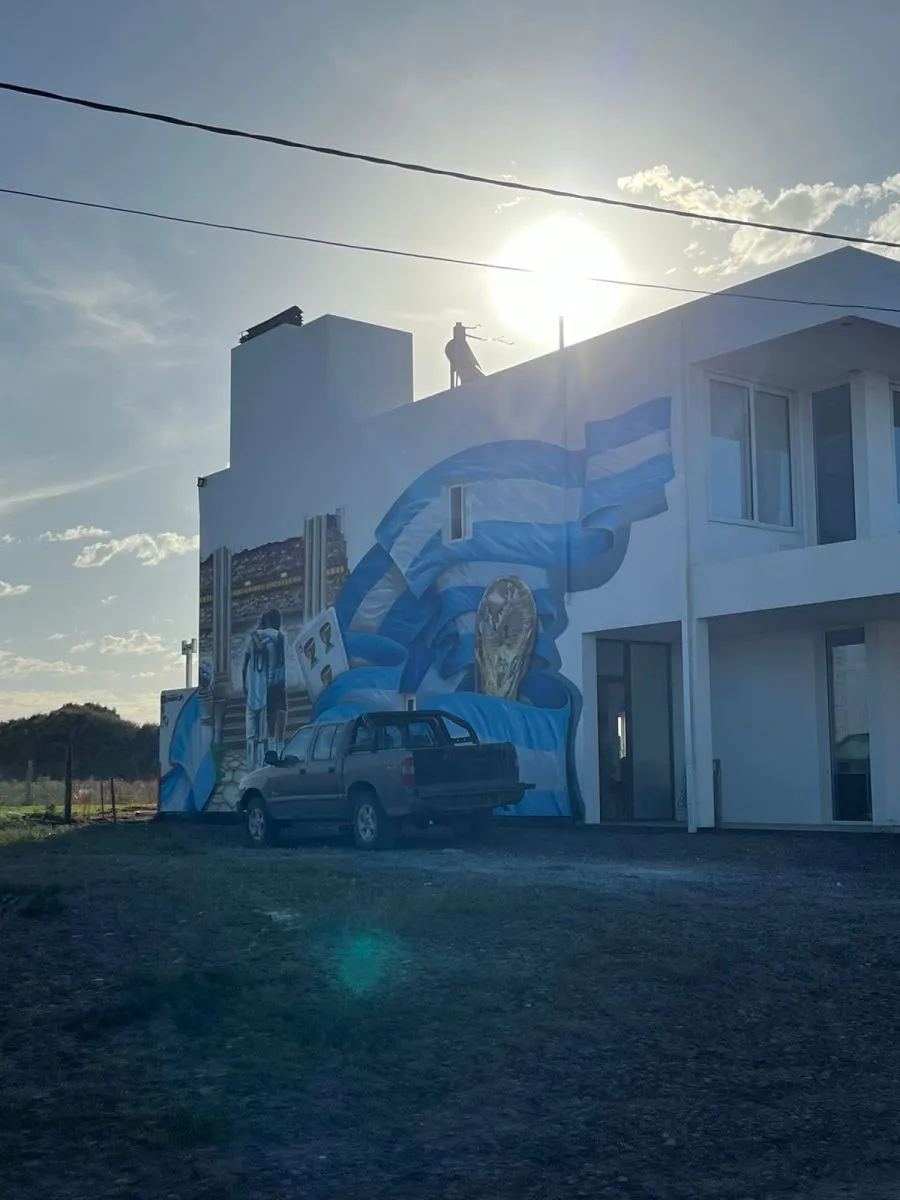 El sol, Messi y Maradona: un mural que diariamente se convierte en postal