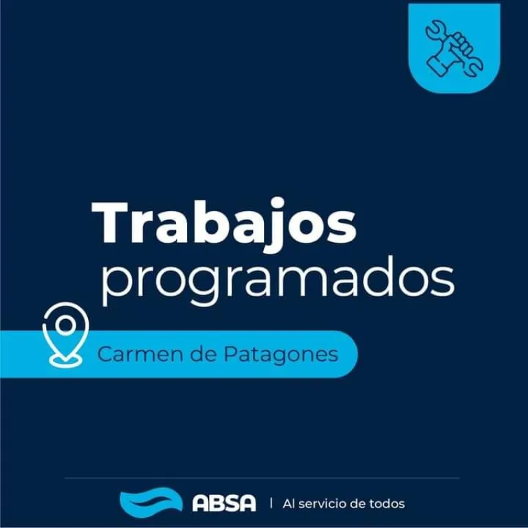 La empresa Aguas Bonaerense Sociedad Anónima (ABSA) notificó al Municipio de Patagones informando que este miércoles se realizarán tareas de mantenimiento sobre la red de agua en la calle Luis Piedrabuena y Mascarello, en Carmen de Patagones.