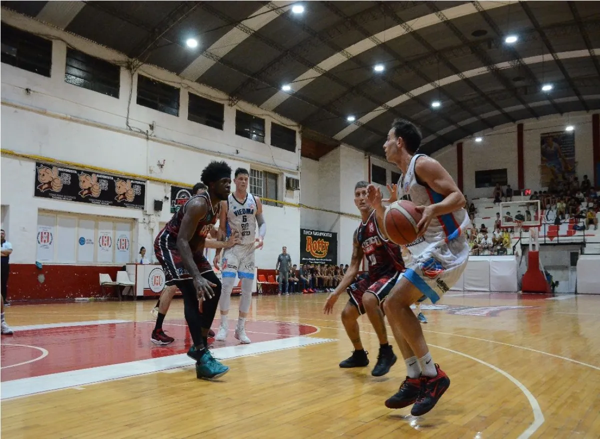 En el segundo cuarto, fueron protagonistas los errores ofensivos y la poca efectividad, donde las defensas se impusieron. Por esa razón, el elenco viedmense, aprovechó los tiros de larga distancia, con buenos momentos de Alexis Knecht y Martín Fagotti, para revertir el marcador e irse al descanso 38 a 41.