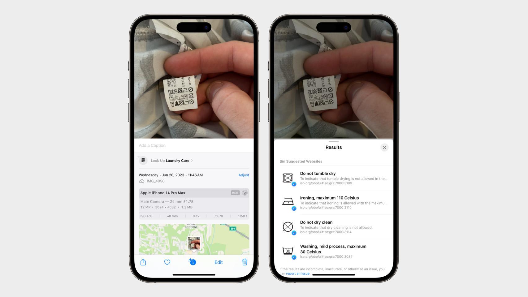 Esta función te revelará datos importantes, como si la prenda es apta para la secadora, si debe lavarse a mano o cómo debe secarse. Siguiendo estas indicaciones, podrás mantener tus prendas en perfecto estado durante mucho más tiempo. No tendrás que preocuparte por arruinar tu ropa en el lavado nuevamente, gracias a la tecnología de tu iPhone.