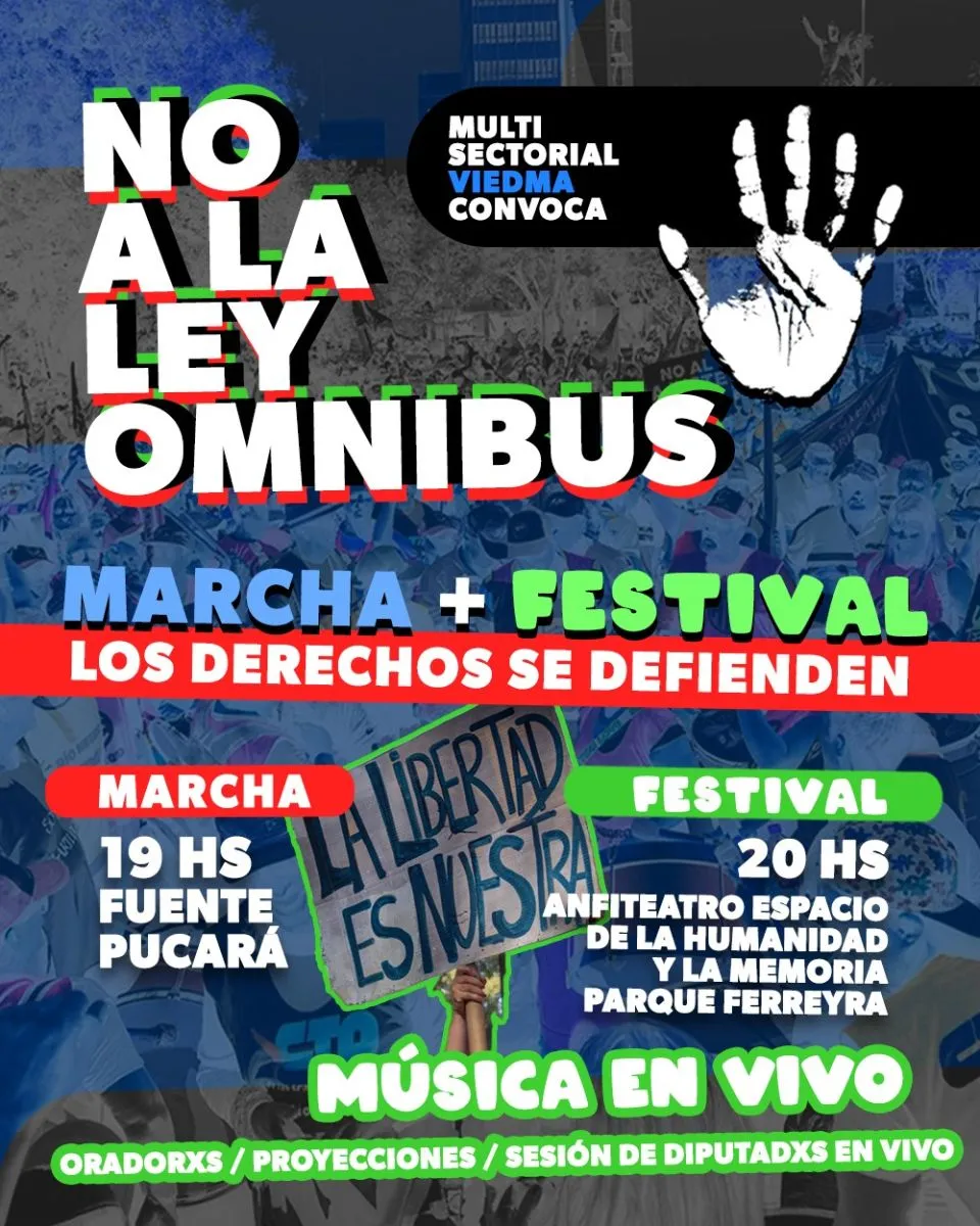 La Multisectorial de Viedma convoca a una marcha y festival artístico bajo la consigna "Los Derechos se defienden" este martes 6 de febrero.