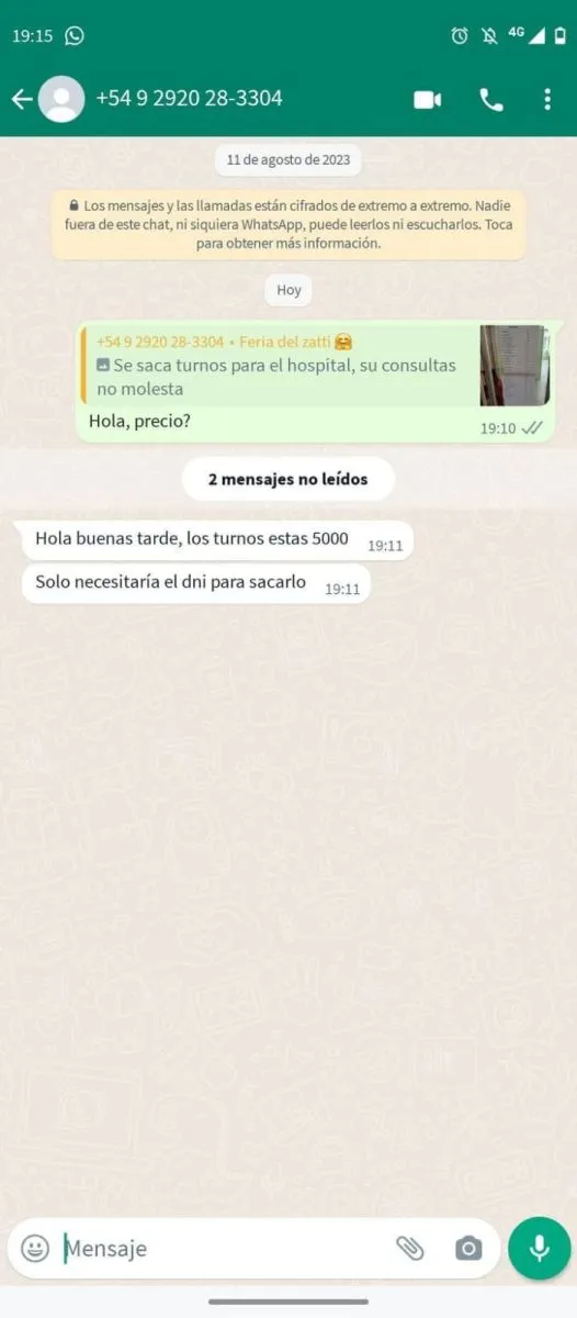 Hoy en redes sociales y en grupos de WhatsApp, la promoción de los "turneros" es cortita y al pie. "Saco turnos en el hospital, soy responsable y el turno es seguro", es parte del eslogan. El único requisito es que les den su Documento Nacional de Identidad.