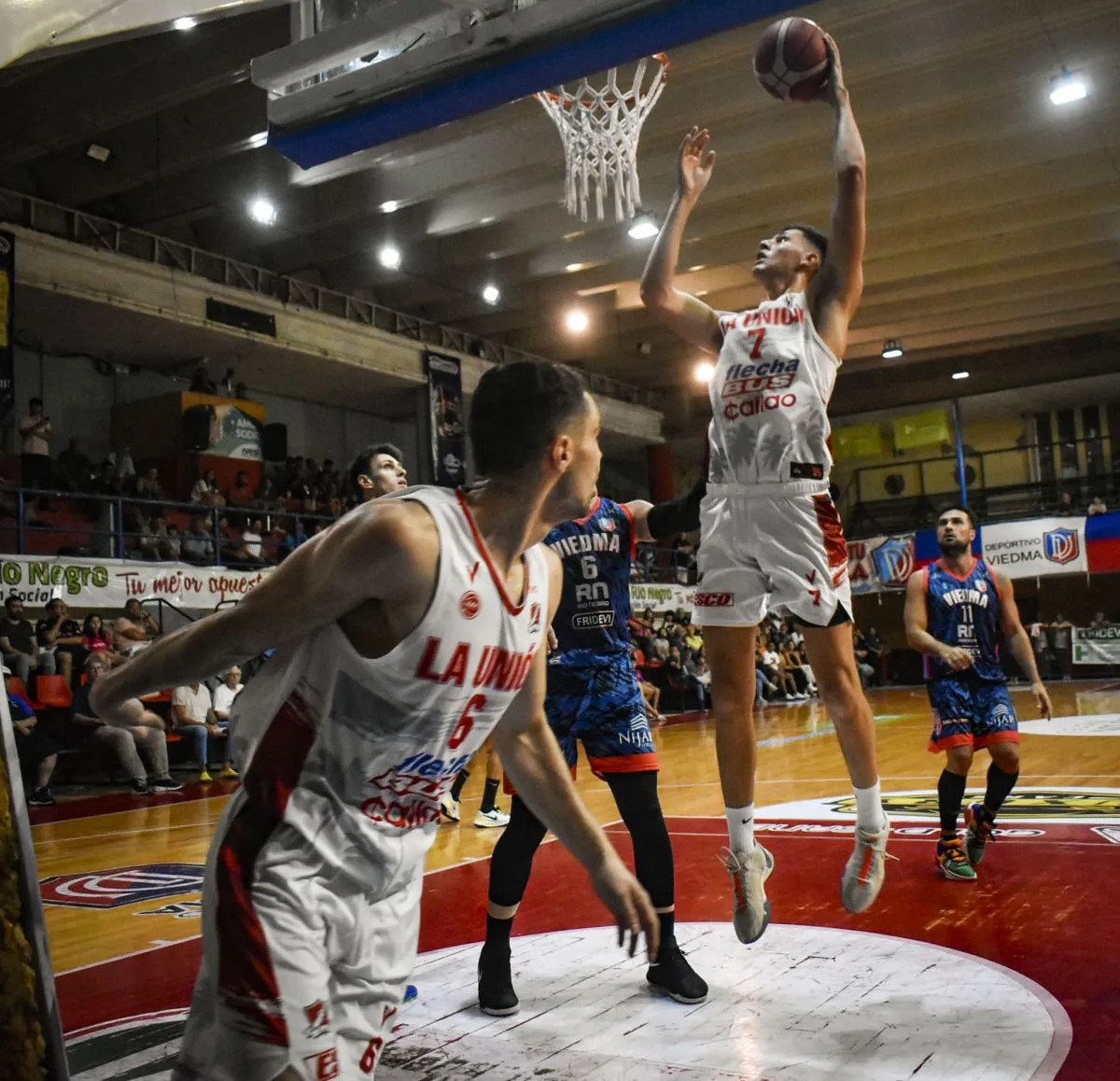 Durante los últimos minutos, el duelo se hizo más intenso y el encuentro más físico. A pesar de que La Unión fue controlando el partido a lo largo de la noche, llegando a una diferencia máxima de 18 puntos a su favor en el tercer cuarto (32-50), Viedma empujó hasta el cansancio y en los últimos minutos ajustaron la defensa consiguiendo acercarse en el tanteador a 6 puntos (75-81). Pero no duró mucho la ilusión de los viedmenses, Facundo Gago convirtió un triple faltando un minuto y sentenció la historia.