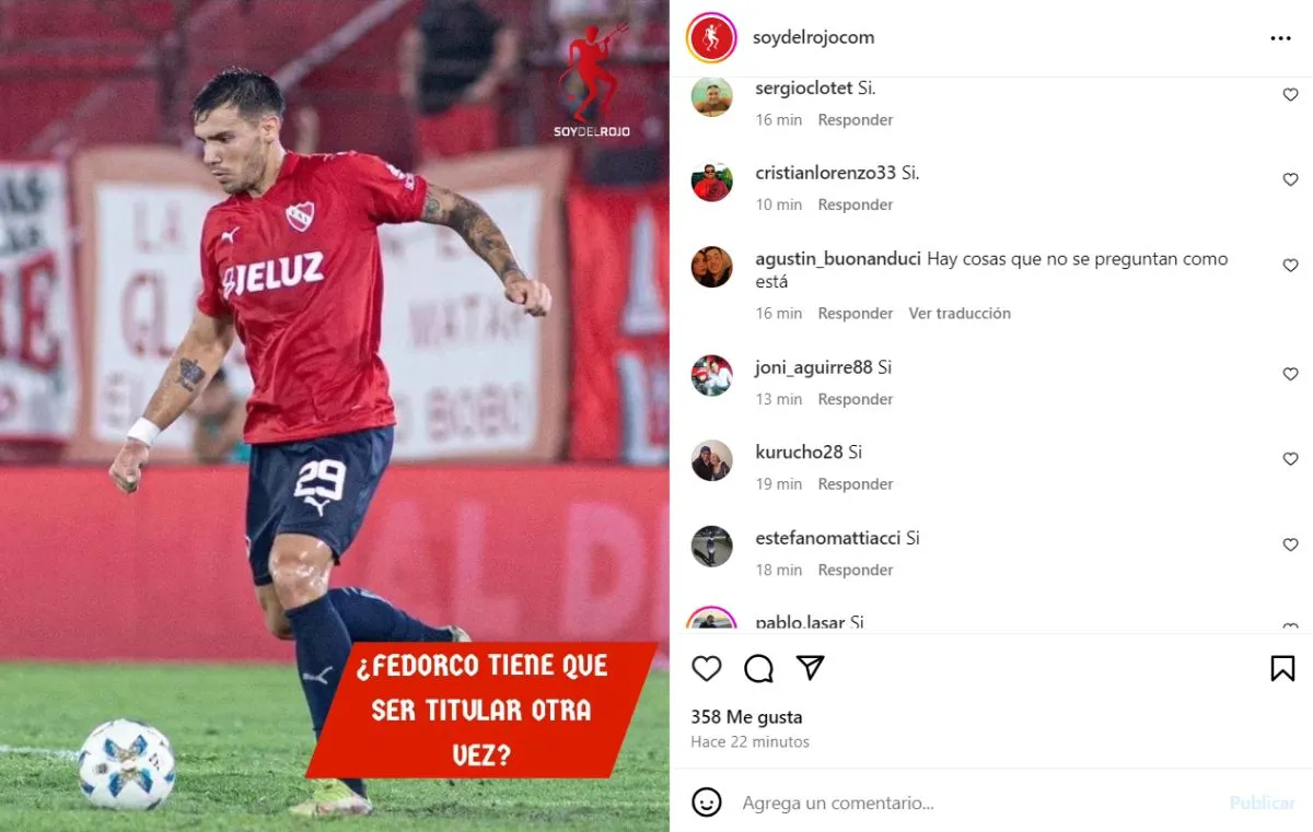 Las redes partidarias y oficiales hablan de Juan Manuel, y allí realizaron una encuesta que no dejó dudas de que el futbolista que llegó proveniente de Chicago se metió a todos en el bolsillo. “¿Fedorco tiene que ser titular otra vez?”, lanzaron en Soy del Rojo, página con más 63 mil seguidores.