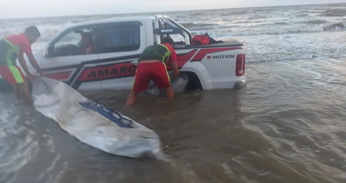 El hecho en cuestión ocurrió pasadas las 19:30 cuando la marea comenzaba a subir y el conductor de la camioneta quiso cruzar una ría, pero no pudo. Fue así que algunos guardavidas y Teramo se movilizaron hasta el lugar para ayudarlo.