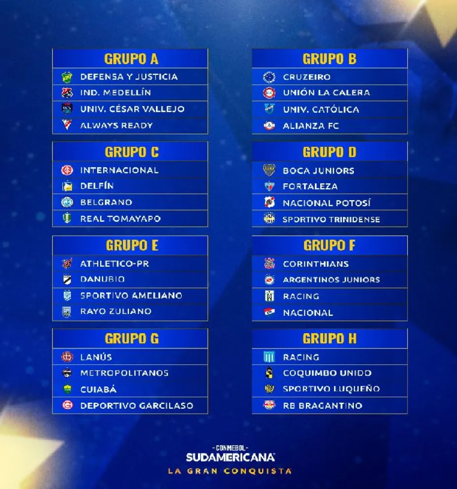 Argentinos Juniors no tendrá un trámite sencillo, es que se ubica en el Grupo F junto a Corinthians, Racing de Uruguay y nacional de Paraguay, mientras que Lanús, es cabeza de serie del Grupo G, y competirá junto a Cuiabá de Brasil, Real Garcilaso de Perú y Metropolitanos de Venezuela.