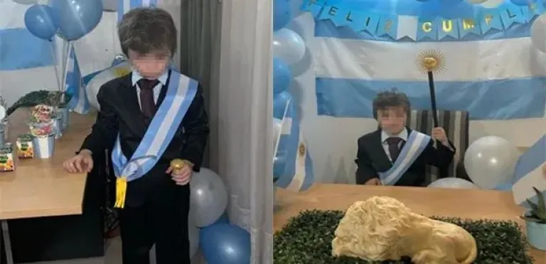Un nene de 7 años festejó su cumple con la temática "Milei"